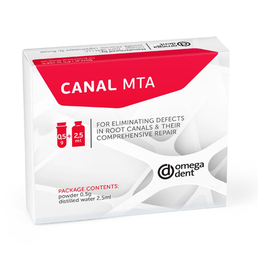 “Canal MTA” is characterized by a high sealing ability, which remains practically unchanged in contact with blood. The material has a high value of pH ≈ 12, and has therefore a pronounced bactericidal effect. Mechanical properties of “Canal MTA” are similar to natural dentin and cement of the root. Material stimulates osteogenesis and cementogenesis, it has high strength and durability.