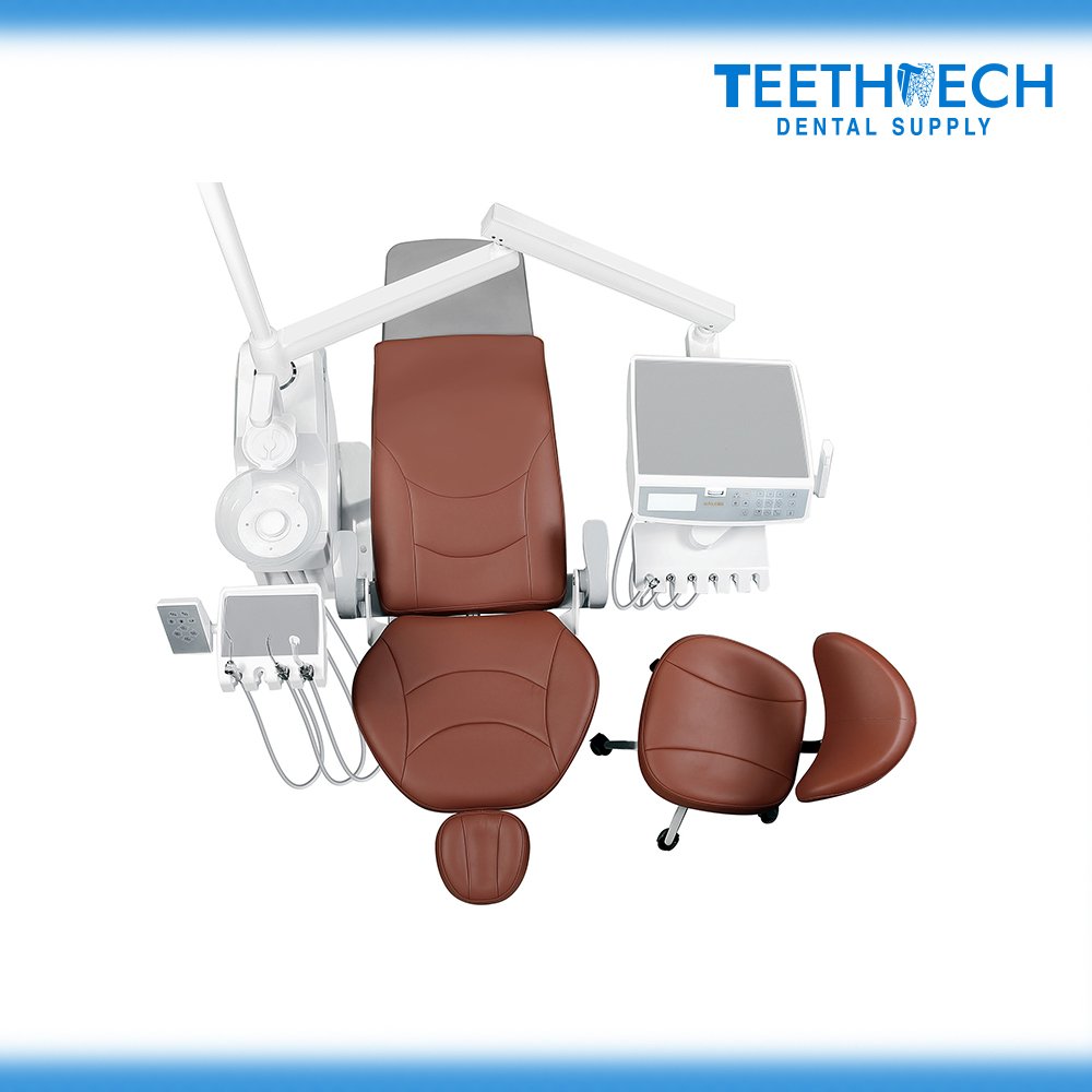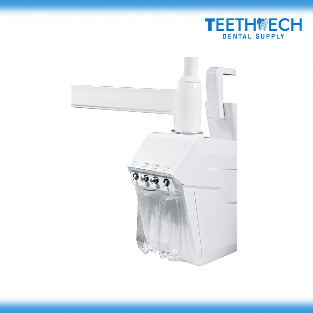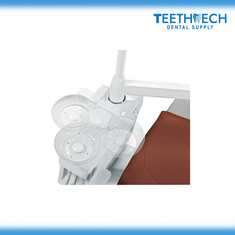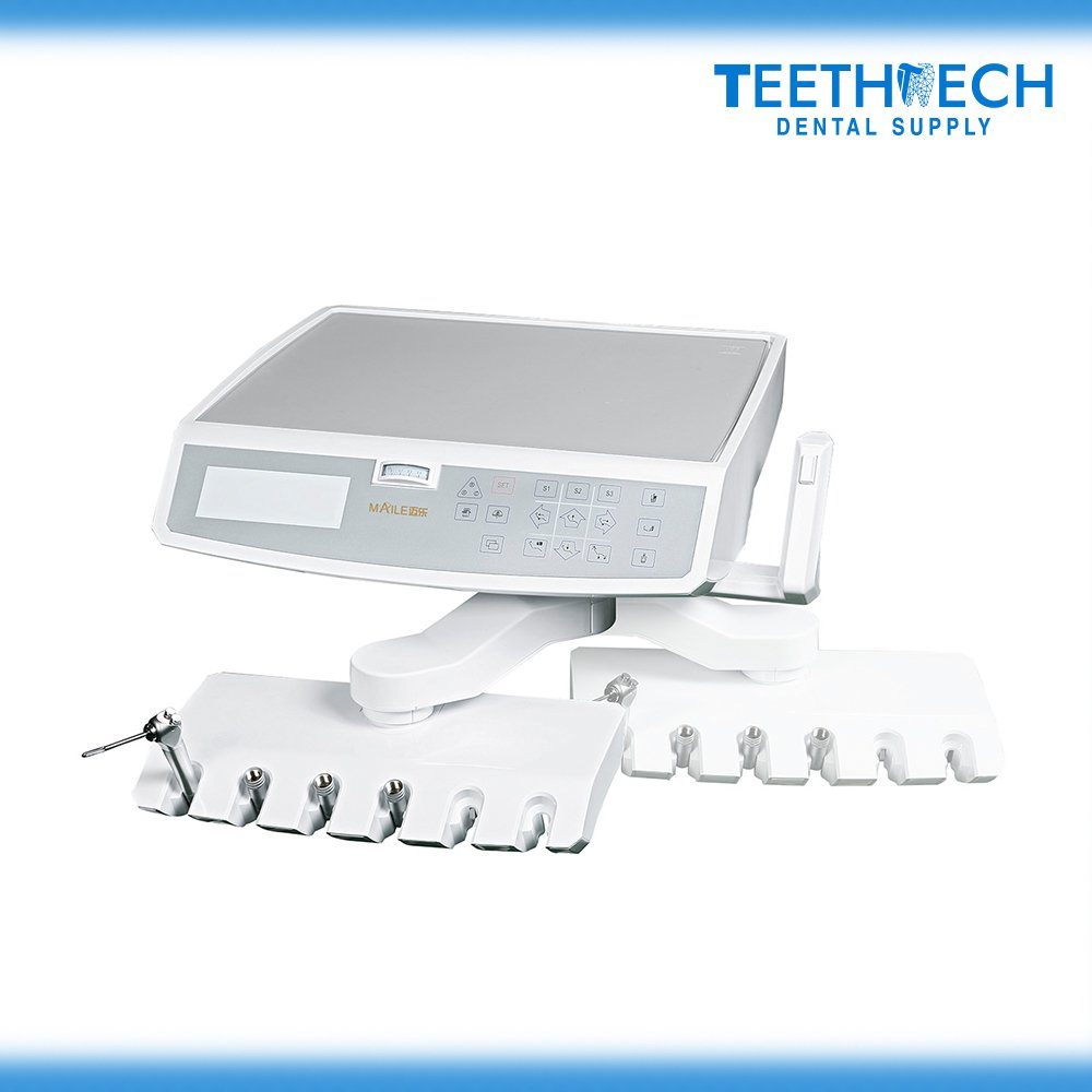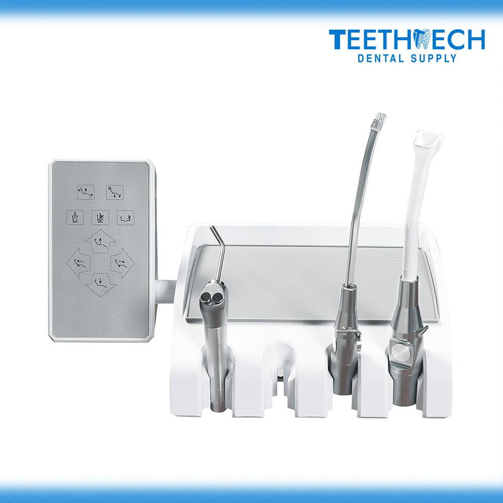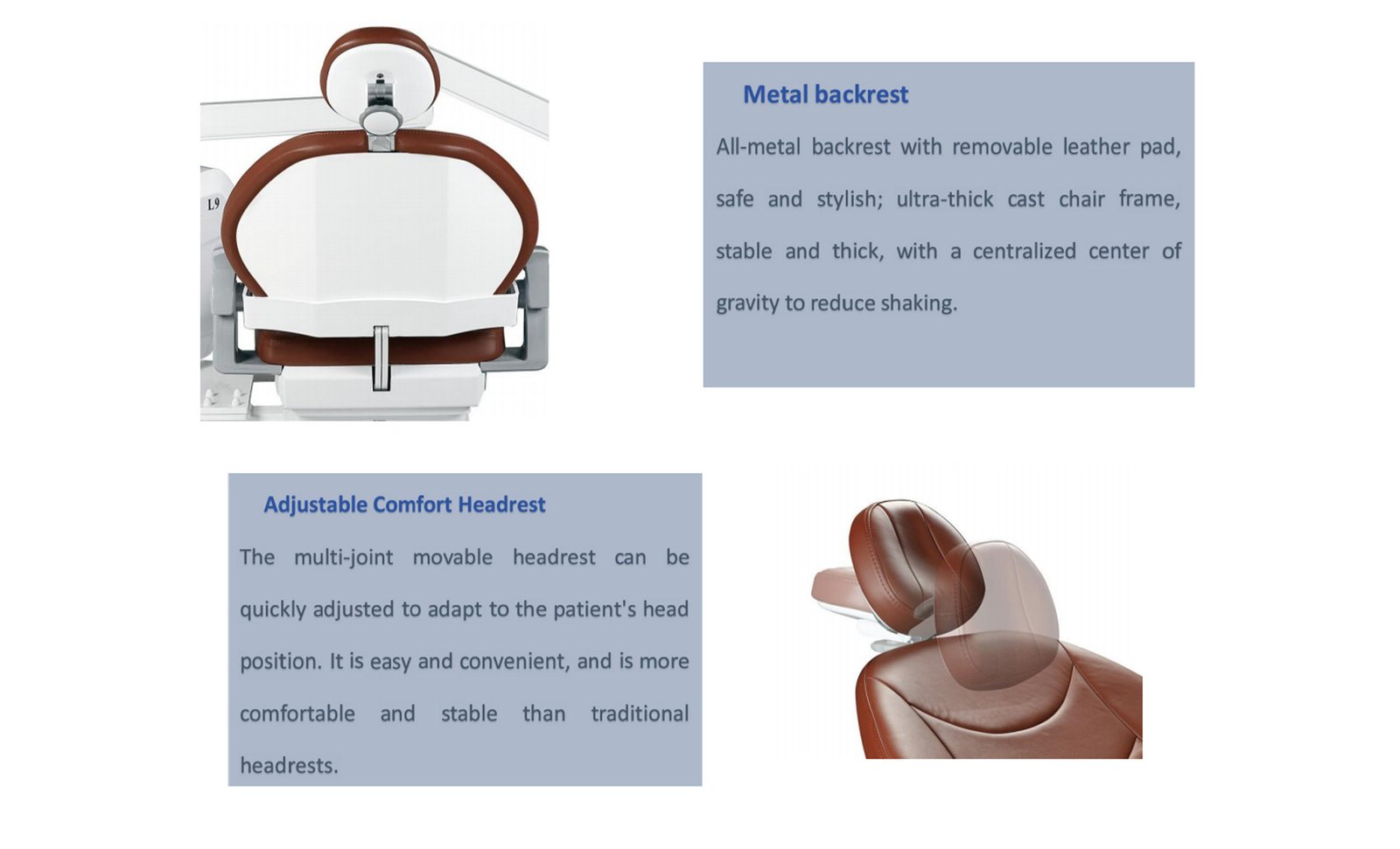 The new dual-color source 6-bead oral lamp maintains a stylish appearance while focusing on shadowless lighting; it can be controlled by induction or manually. The all-metal backrest is more solid, with a standard microfiber leather pad, which is soft and comfortable, and the wider, larger and more stable seat protects the patient; Imported water and air pipes, solenoid valves and motors increase the use time of the dental chair and eliminate quality worries; The oversized rotatable box, water and electricity separated assembly, is easy to repair and regular inspection; The double water storage bottle reduces the number of times the doctor stores water, saves time, and is clean and hygienic; The newly designed tool tray, novel and unique design, the mobile phone hanger can rotate 360 ​​degrees, saving the doctor time to adjust the tool during surgery and facilitating the doctor’s operation; 9 memory positions with touch screen buttons, convenient for multiple doctors to use at the same time; The new assistant console, the main control and the auxiliary control are equipped with sterilizable silicone pads, which are hygienic and convenient; The movable armrests are convenient for patients to get on and off.