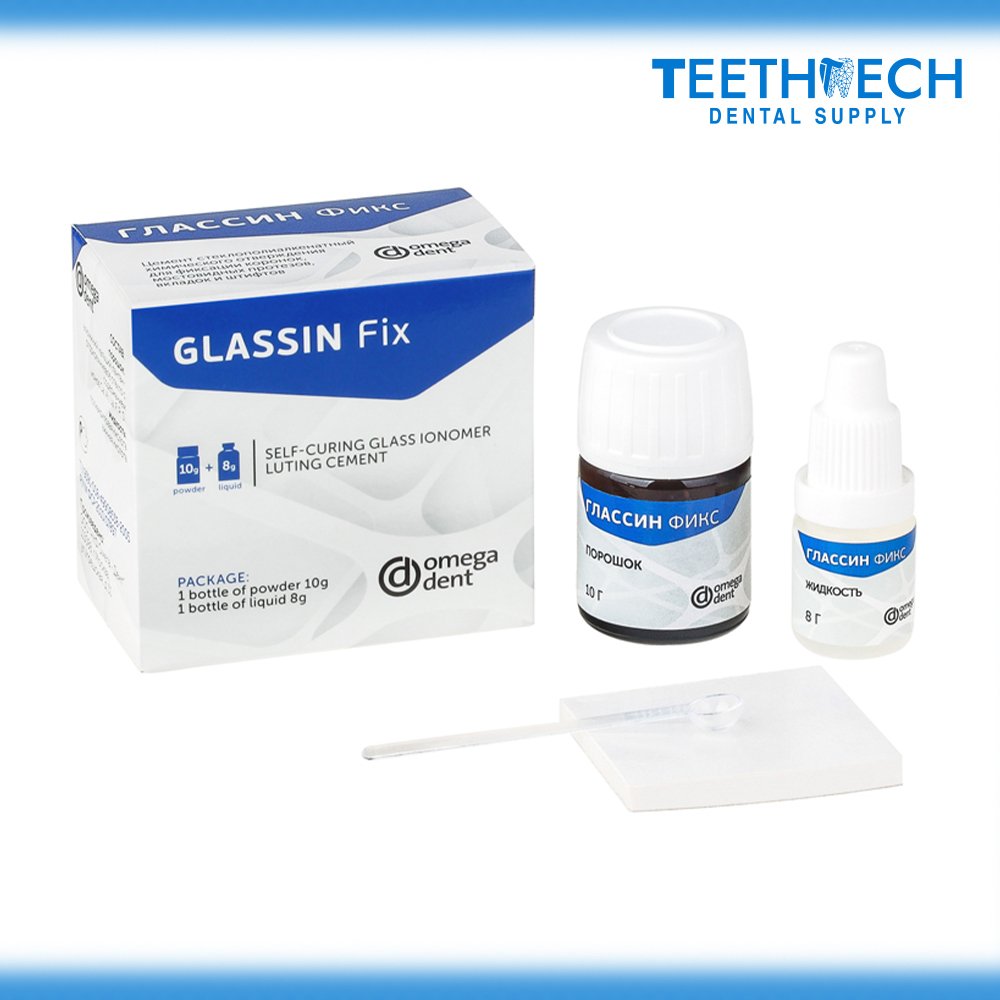 Omega Dent Glassin Fix is a fast-setting, radiopaque glass ionomer luting cement ideal for reliable fixation of crowns, bridges, inlays, and orthodontic appliances.