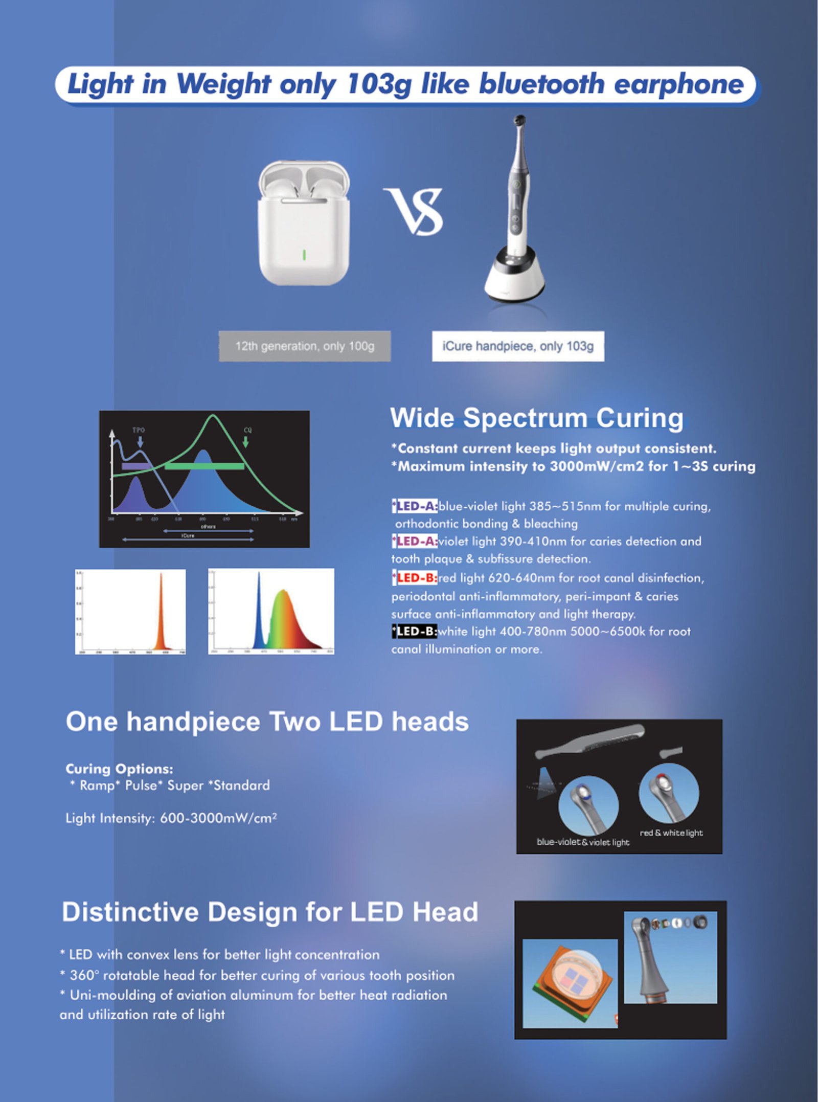 Multiple Curing Modes: Choose between standard, high, and pulse modes based on material and clinical need.