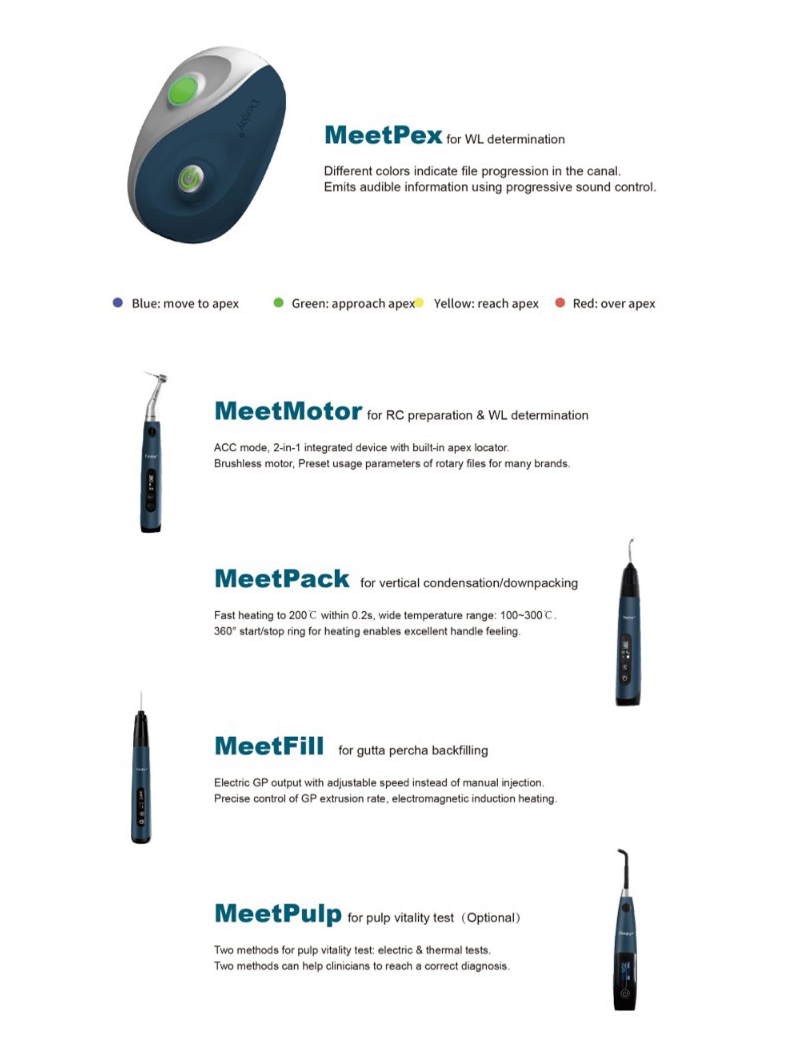 The Denjoy Meet Endo Motor is a cost-effective, cordless rotary endodontic system built for everyday dental practices. Its lightweight, compact design makes it ideal for routine root canal procedures, especially in clinics seeking a reliable and easy-to-use solution for canal preparation.