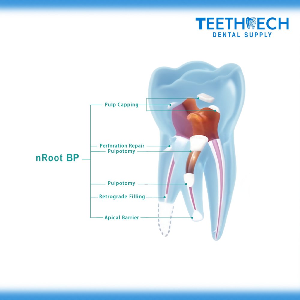 Composition: Zirconium oxide, Tricalcium Silicate, Dicalcium Silicate, Calcium Hydroxide, Calcium Phosphate and Thickener