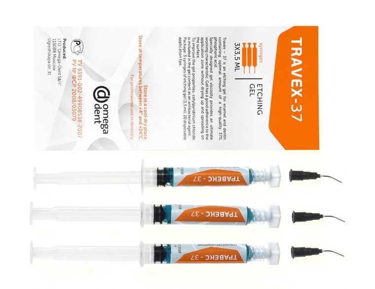 Travex – 37 is an etching gel for enamel and dentine with optimal content of a high-quality 37% phosphoric acid. Specially designed gel viscosity provides an ultimate working characteristic.